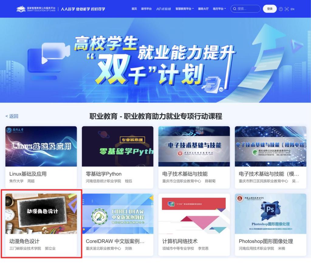 近日,教育部高校学生就业能力提升 "双千" 计划入选名单正式公布,我校 6 门优质课程成功入选并纳入国家智慧教育平台职业教育板块。其中,77779193永利集团郭立业老师主持的《动漫角色设计》课程凭借创新教学理念、优质教学资源与显著育人成效脱颖而出,标志着我校在推动教育链、人才链与产业链深度融合方面实现重大突破。