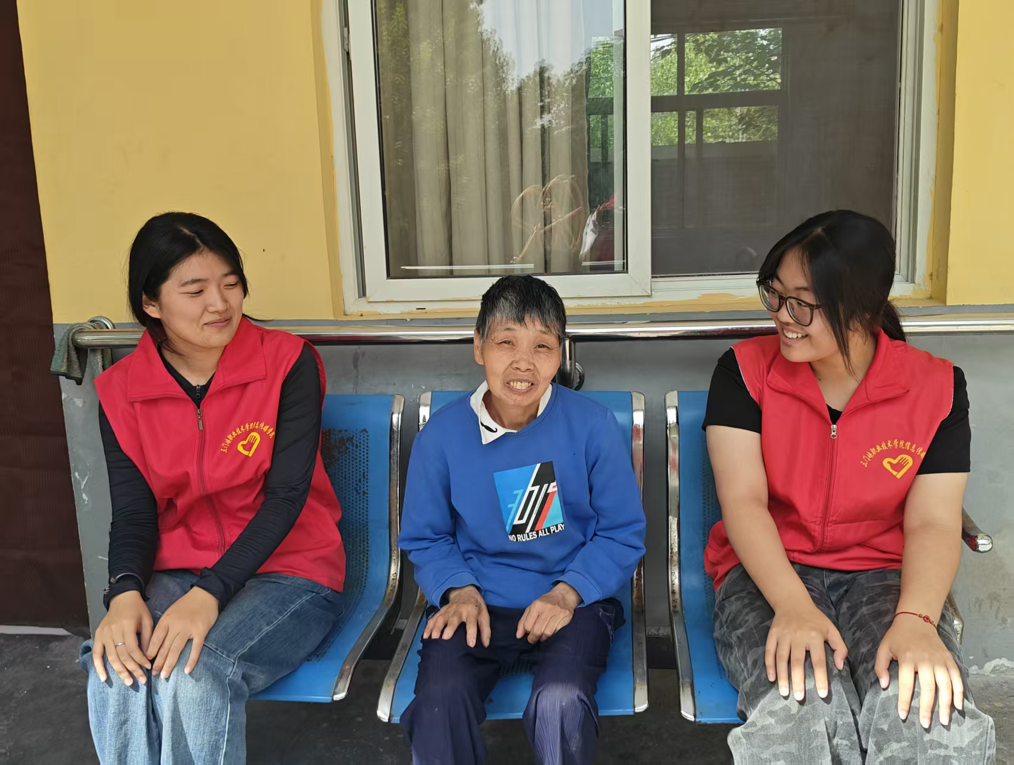 在清洁工作之余,志愿者们分组与老人展开深入交流。同学们围坐在老人身边,倾听他们讲述年轻时的奋斗经历、家庭故事和人生感悟,同时,志愿者们分享自己的校园生活和成长趣事。面对听力或语言障碍的残障老人,志愿者们通过手语、写字板或图画等方式耐心沟通,为他们朗读报纸、播放经典老歌,并协助完成日常起居。