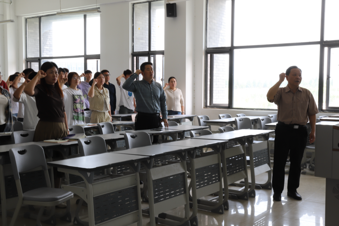 党总支书记刘学文对“五一”假期院部安全工作及今后一段时间重点工作进行安排部署,并为王登平、李喜华两位同志过“政治生日”,通过颁发政治生日卡,让党员发表入党初心感悟,带领全体与会党员重温入党誓词,引导党员坚定理想信念、永葆入党初心、牢记责任使命。