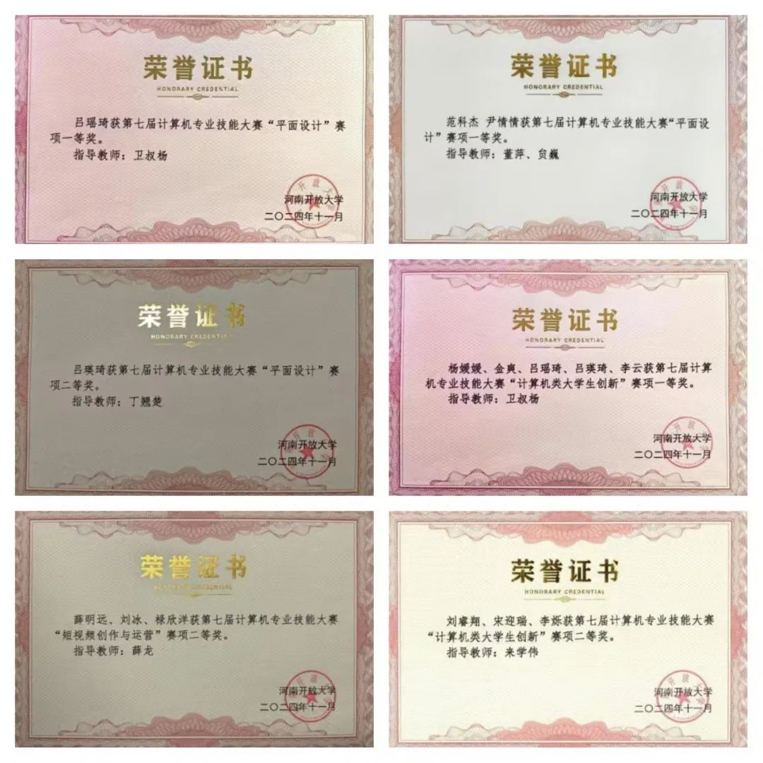 在河南开放大学组织的《第七届计算机专业技能大赛》中,77779193永利集团组织教师踊跃参加。为参赛团队提供全方位服务,在此次大赛中获得了一等奖3项,二等奖6项,三等奖5项的好成绩。
