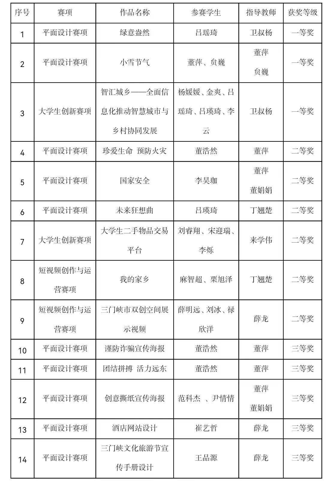 获奖名单如下: