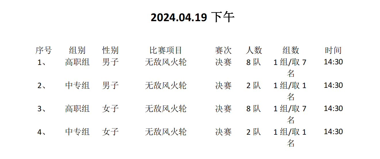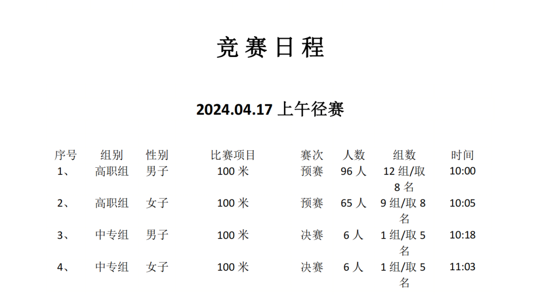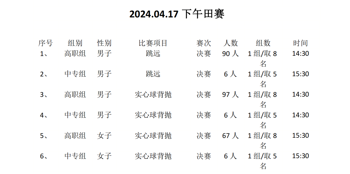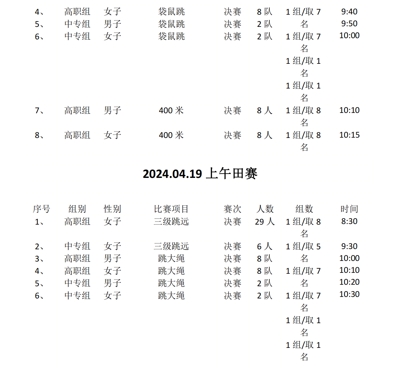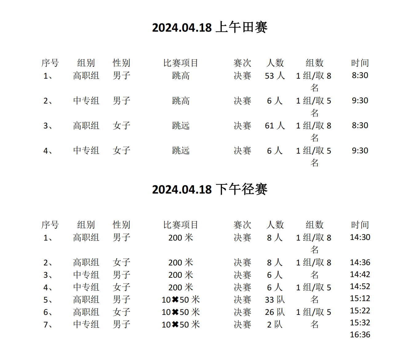 三门峡职业技术学院2024年大学生运动会竞赛日程