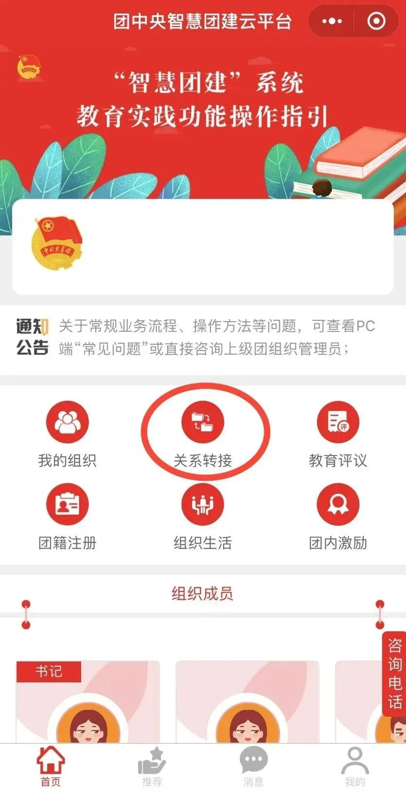 各位团员在发起团组织关系转接申请中要填写两个联系电话(本人或家人电话),确保能够随时建立联系。