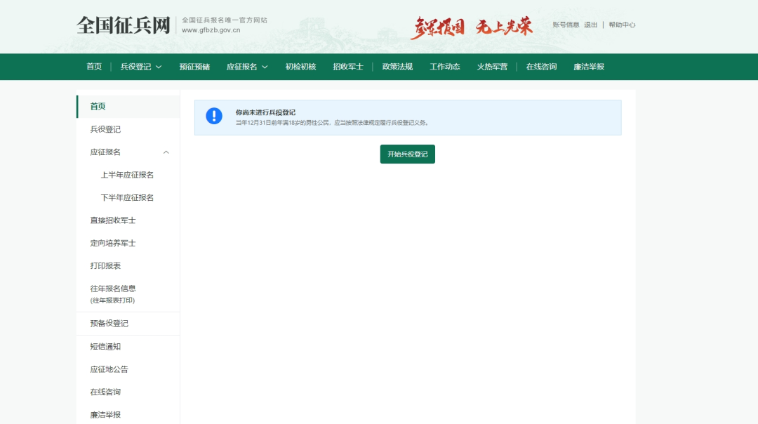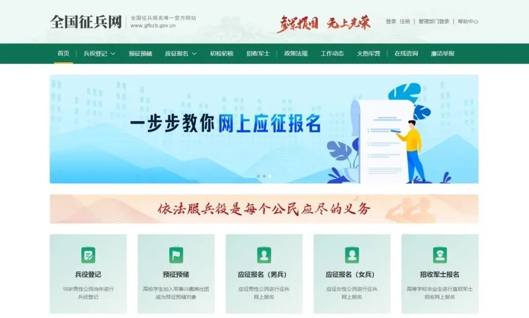 电脑端浏览器搜索“全国征兵网”,点击应征报名(男兵)