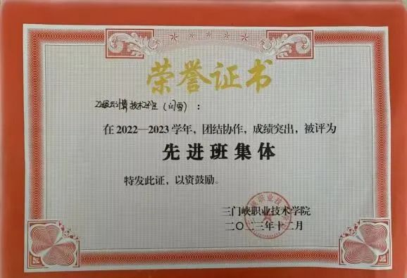 4.所带班级在2022—2023学年,团队协作,成绩突出,被评为三门峡职业技术学院“先进班集体”;
